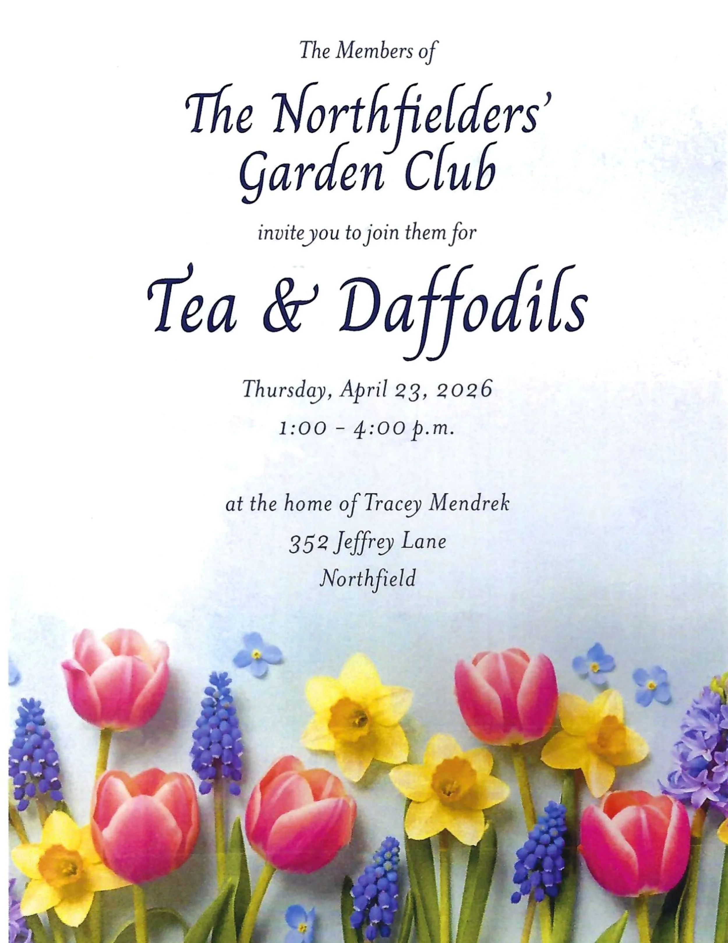 Bulb planting will occur at the October meeting so the yard is filled with bright blooms for the April event. Daffodil arrangements are created by the members to fill the inside of the residence with creative spring cheer. Be sure to get your bulbs into your gardens to give options for those arrangements and help with the October planting!